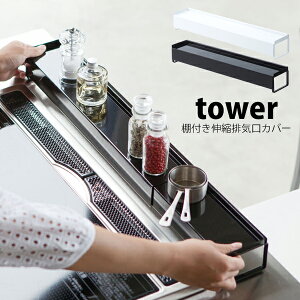 排気口カバー Tower コンロ ラック 調味料ラック キッチン 収納 Tower タワー 棚付き伸縮排気口カバー 排気口カバー コンロ コンロ奥カバー Ih Ihクッキングヒーター ビルトインコンロ 排気口 カバー ラック 棚 スタンド 調味料ラック キッチ 台所 収納 引き出し